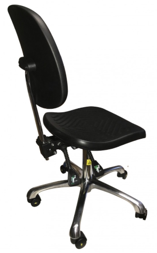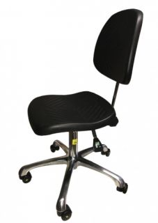 Антистатический лабораторный стул из мягкого негорючего термостойкого токорассеивающего формованного полиуретана. Подходит для использования в чистых помещениях высоких классов чистоты. Конструкция стула выполнена из частей, обеспечивающих стекание заряда от спинки на пол. В стуле не применяются различные провода и цепочки для стекания заряда. Подходит для использования в чистых помещениях высоких классов чистоты.