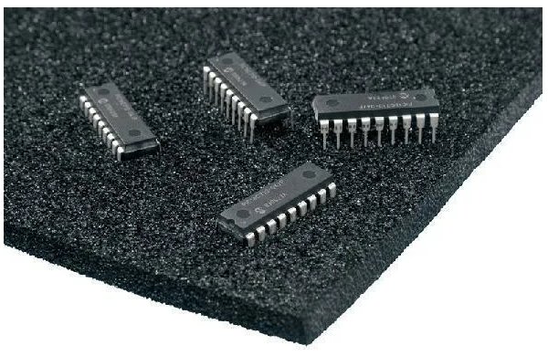 - Этот плотный, токопроводящий поролон, полиэтиленовый, тип закрытая ячейка, применяется при упаковке и транспортировке электронных компонентов и модулей, обеспечивает плотную фиксацию контактов (ножек) микросхем, является «не пылящим» и идеально подходит для применения в чистых помещениях.