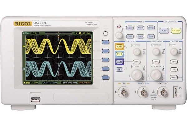 • осциллограф RIGOL DS1052D позволяет осуществить автоматическую настройку нажатием одной кнопки (AUTO) для быстрого получения осциллограммы входного сигнала, упрощающей использование осциллографа