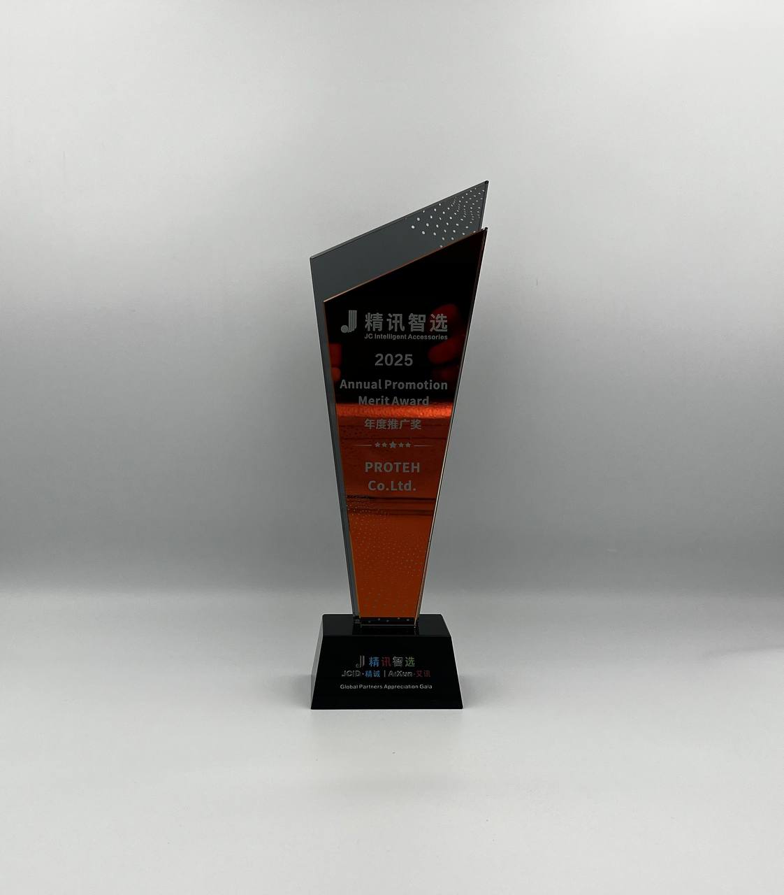 В Китае (г. Шэньчжэнь) прошло мероприятие JCID, посвященное подведению итогов работы в 2025 году. ПРОТЕХ был отмечен на церемонии вручения наград за вклад в развитие бренда AiXun. Присутствовал на мероприятии и получал статуэтку и сертификат признания специалист по внешнеэкономической деятельности ПРОТЕХ Николай Трофимов.
