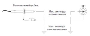 | Макс. напряжение относительно земли | 1000 Вср.кв. КАТ II/600 Вср.кв. КАТIII (между корпусом входного разъёма BNC и землёй) |