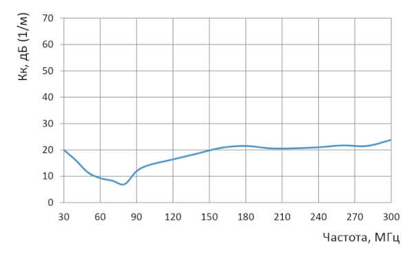- Коэффициент калибровки (Кк): ≤ 30 дБ (1/м)