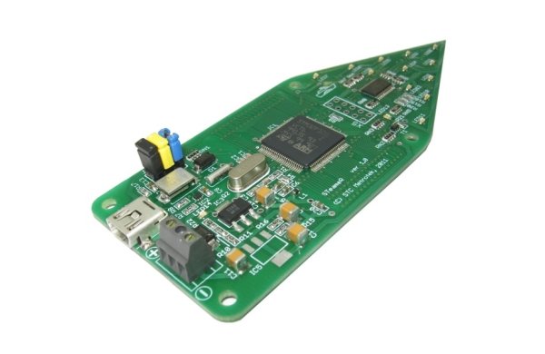 Основной компонент STeameR — простая плата с микроконтроллером STM32F105 с возможностью установки дополнительных модулей. Может работать от внешнего источника питания, батареек или компьютерного USB-интерфейса. Программирование микроконтроллера можно выполнять как по USB, так и через JTAG.