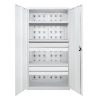Шкаф инструментальный имеет тщательно продуманную конструкцию с наполнением под конкретные задачи. В мастерских, производственных цехах, на различных предприятиях следует устанавливать оборудование для хранения, подготовленное с учётом особенностей производства. На задней стенке шкафа расположена перфопанель, на которой могут быть размещены крючки для инструментов. Конструкцию дополняют полки и выдвижные ящики, которые могут быть маркированы по предназначению и месту хранения.