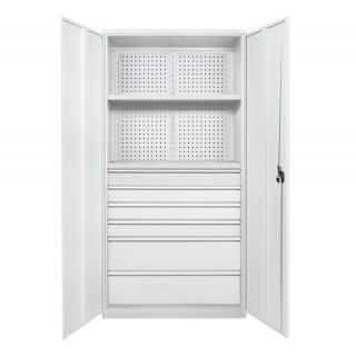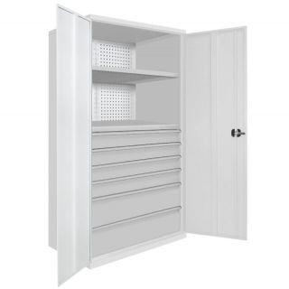 Шкаф инструментальный ШИО имеет тщательно продуманную конструкцию с наполнением под конкретные задачи. В мастерских, производственных цехах, на различных предприятиях следует устанавливать оборудование для хранения, подготовленное с учётом особенностей производства. На задней стенке шкафа расположена перфопанель, на которой можно разместить крючки для инструментов. Конструкцию дополняют полки и выдвижные ящики с возможностью маркировки по предназначению и месту хранения.