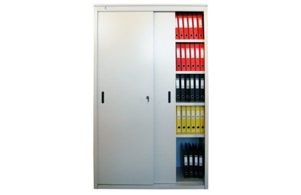 Металлические шкафы-купе серии AL и ALS с закругленными кромками. Шкафы-купе со скользящими дверями доступны в трех модификациях по высоте и четырех модификациях по ширине. Шкафы-купе выполнены из стального листа толщиной 0,8мм,окрашены шкафы в светло-серый ( RAL 7035) цвет. Боковые панели шкафов имеют закругленные внешние грани, приятного дизайна с высокими эргономическими характеристиками. В комплект входят полки. Максимальная нагрузка на полку составляет 60 кг. Шаг регулировки полок по высоте - 50мм. Двери оснащены замком-кнопкой с Йельской блокировкой открывания. Раздвижные двери шкафа-купе не требуют дополнительного места для открывания.