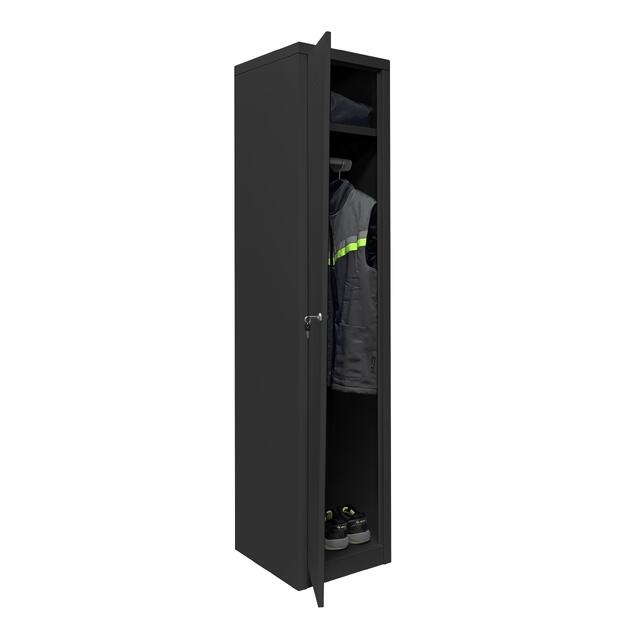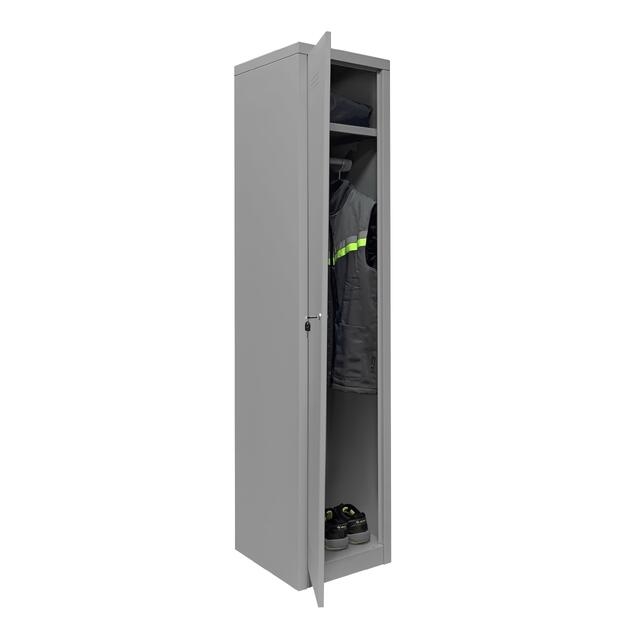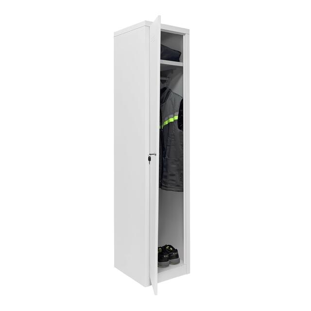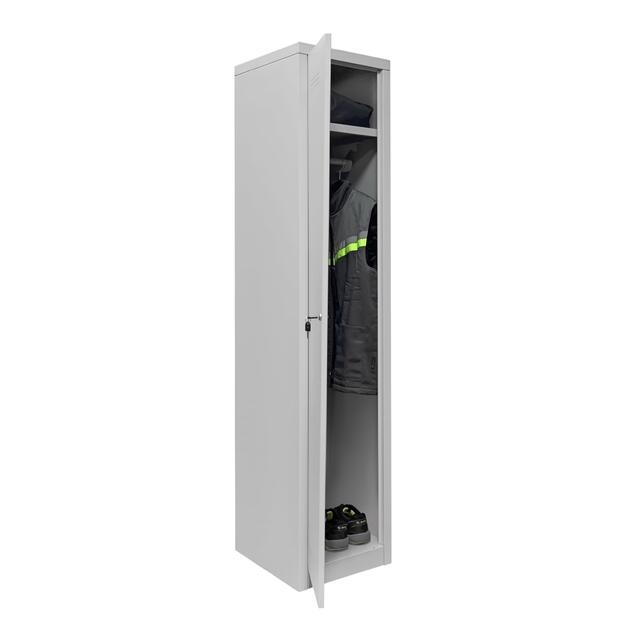 Шкаф металлический для раздевалок односекционный серии ШРО оснащен ключевым замком, верхней полкой для головных уборов и мелочей, перекладиной для вешалок и дополнительной перфорацией для обеспечения проветривания внутренней зоны шкафа. Предназначен для хранения личных вещей, рабочей и сменной одежды в раздевалках производственных помещений, складов, спортивных центров, учебных заведений. Прочная и надежная конструкция шкафа выполнена из листового металла толщиной 0.8 мм., окрашенного износостойкой порошковой краской.