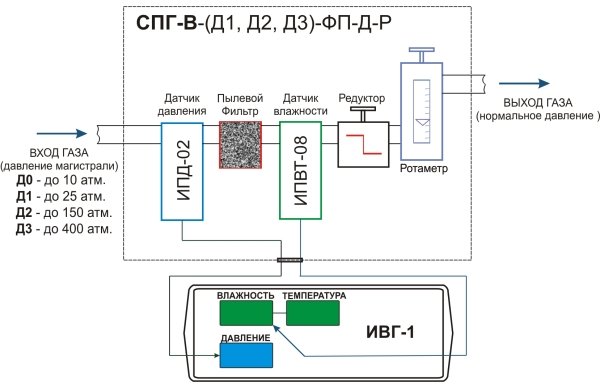 СПГ-В - система для измерения температуры точки росы сжатых газов при давлении, равном давлению в газовой магистрали.