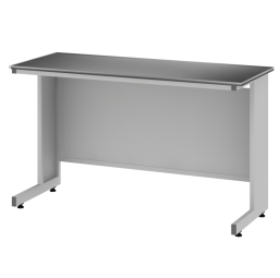 В основе стола усиленный О-образный, разборный металлокаркас из стальной профильной трубы, прямоугольного и квадратного сечения.. Задняя стенка закрыта металлическим экраном. Стол установлен на регулируемые винтовые опоры, позволяющие устанавливать стол строго горизонтально, компенсируя неровности пола.