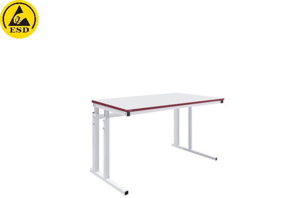 Стол антистатический согласно требованиям стандарта ГОСТ IEC 61340-5-1-2019 , на лицевой стороне столешницы имеет маркировку - знак ESD (Electrostatic sensitive device), обозначающий работу с материалами чувствительными к электростатическому разряду. Основу столешницы составляет плита МДФ облицованная HPL ESD пластиком. В комплект поставки антистатического стола входит ESD набор для заземления столешницы — болт и провод с клеммой.